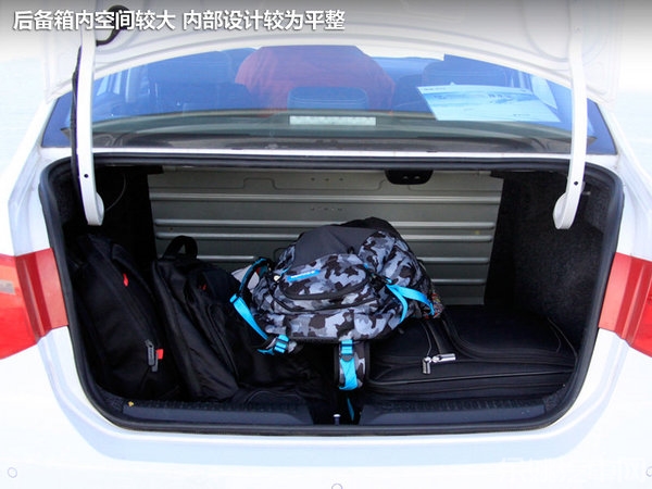 后备箱的开启方式和新桑塔纳一样,除了在车尾用钥匙开启外,也可以使用车内的开锁按键。后备箱空间并不算小,整齐的设计可以放入不少的行李。