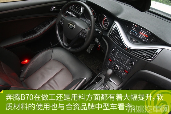 奔腾B70的内饰与老款完全不同,新车在内饰的整体设计上实现了更加彻底的变化。中控台的设计很有新意,上下两道弧线将彩页液晶屏夹在中间。此外,在高配的全新奔腾B70上配备了双温区的自动空调。运动版车型在内饰方面还采用了金属材质的脚踏板、红色缝线等设计,从感官上增加了车辆的运动氛围。