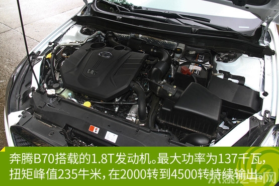 动力上,奔腾新车型开始加入T动力,奔腾B70搭载的是一款1.8T涡轮增压发动机,其最大输出功率为137kW,峰值扭矩为235牛米。与发动机相匹配的是一台6速手自一体变速箱。
